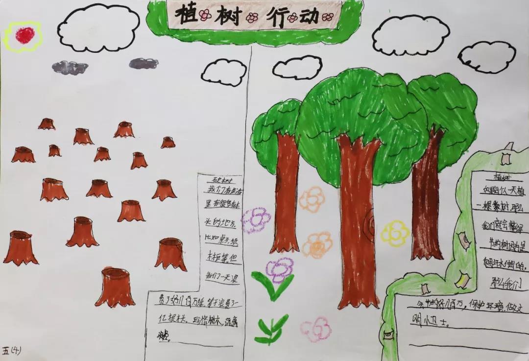 每一张手抄报皆是全班同学智慧的结晶,他们以植树节活动为切入点,把“植树、护树、爱绿”的生态文明观念融入在每一幅画与字里行间之中。